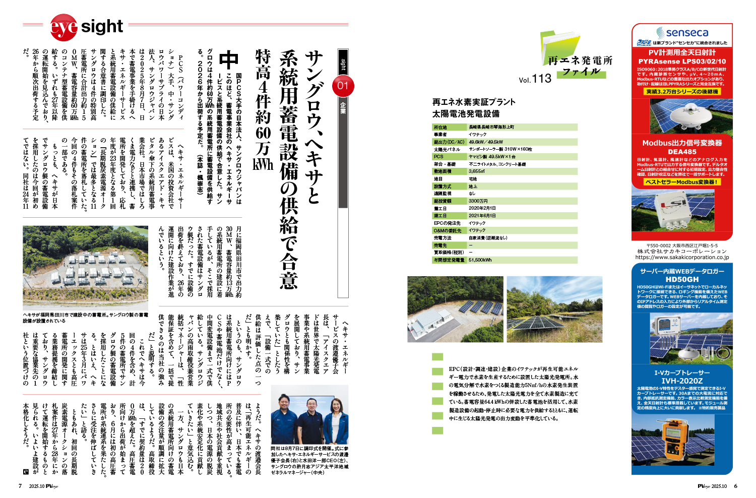 サングロウ、ヘキサと系統用蓄電設備の供給で合意 特高4件約60万kWh