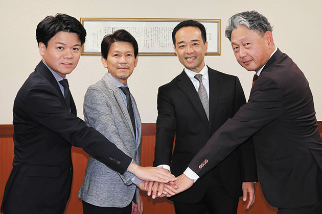 左から、アイ・グリッド・ソリューションズ加田木太朗取締役執行役員、アイ・グリッド・ソリューションズ秋田智一社長、シーパワー岡本晋会長、シーパワー椎原祥一朗社長