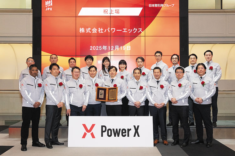 蓄電池製造のパワーエックスが2025年12月19日、東京証券取引所グロース市場に上場した。初値は公開価格を下回る1130円で、終値は1430円だった。上場を機に同社はさらなる事業拡大を狙う。(本誌・川副暁優)