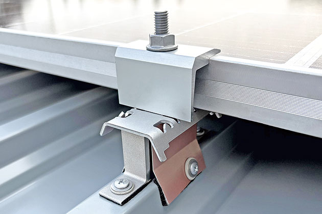 屋根材メーカーのカナメ(栃木県宇都宮市、吉原正博社長)はカバー工法を施したスレート屋根用の太陽光パネル取付金具を2026年4月に発売する。金具の足部分を左右に広がる仕様にして汎用性を持たせ、広く拡販していく構えだ。