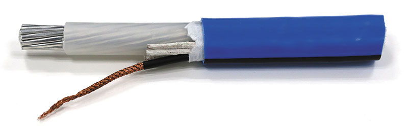 3社共同で実用化した『警報線一体型アルミケーブル』。自動通報機能を備えた警報シールド線を一体成形した新型アルミケーブルだ