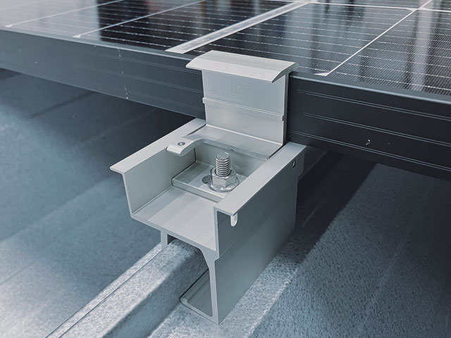 同社は24年9月よりハゼ式折板屋根用の取付金具を販売してきた。ボルト1本で太陽光パネルと屋根を固定できるようにしたうえ、設置と同時にパネル間でアースをとれる仕組みにして施工性を高めた。新商品では、勘合立平葺屋根にも対応させたほか、オプション品のUT金具を使えば、アレイの途中から太陽光パネルを取り外せるようにした。急なレイアウト変更にも対応できるようにしたのだ。