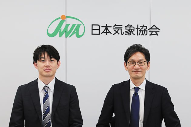 日本気象協会環境・エネルギー本部エネルギー事業部再生可能エネルギー事業課再エネ第1Gの久野勇太グループリーダー(左)と環境・エネルギー本部の山口浩司技師長