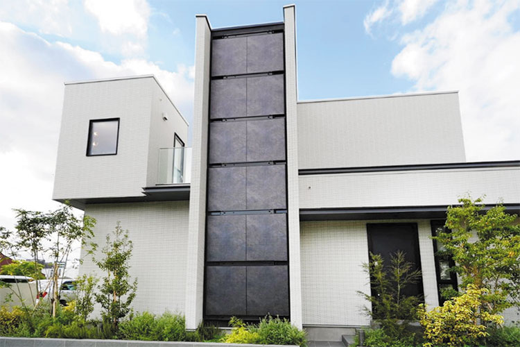 TOPPANは透過加飾フィルム『ダブルビューフィルム』の太陽光パネル向けの製品を開発。写真は住友不動産ハウジングの住宅展示場での実証の模様