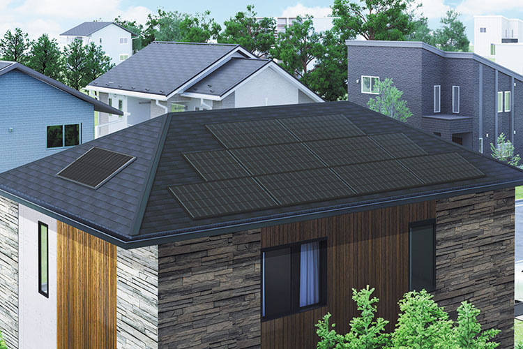 同社はトップコン技術を導入したn型単結晶セル搭載の住宅用太陽光パネルを商品化した。出力235Wと125Wの異なる2種類の製品を用意し、組み合わせることで複雑な形状の狭小屋根にも効率よく設置できるようにした。パネルの表面に特殊な凹凸加工を施し、反射光が分散する防眩仕様にしたほか、フレームやバックシートを黒色に統一して意匠性を高めた。