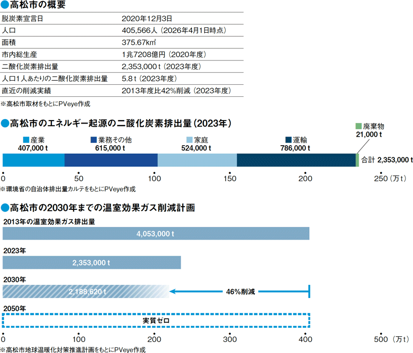 香川県高松市は2026年2月に『脱炭素先行地域』に採択された。市の脱炭素化計画と進捗をまとめた。