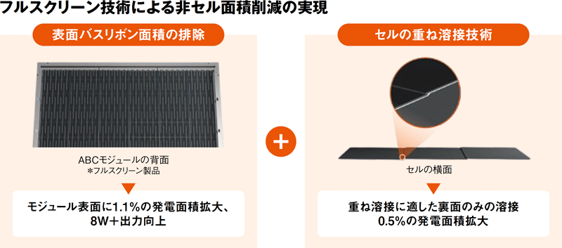これは、その名の通り、太陽光パネル表面の受光面を増やす技術である。いくつかの要素技術で構成されており、その一つがセル同士の隙間を埋める重ね溶接技術だ。それぞれのセルを重ねながら接続することで従来発電していなかったセル間の隙間をなくした。